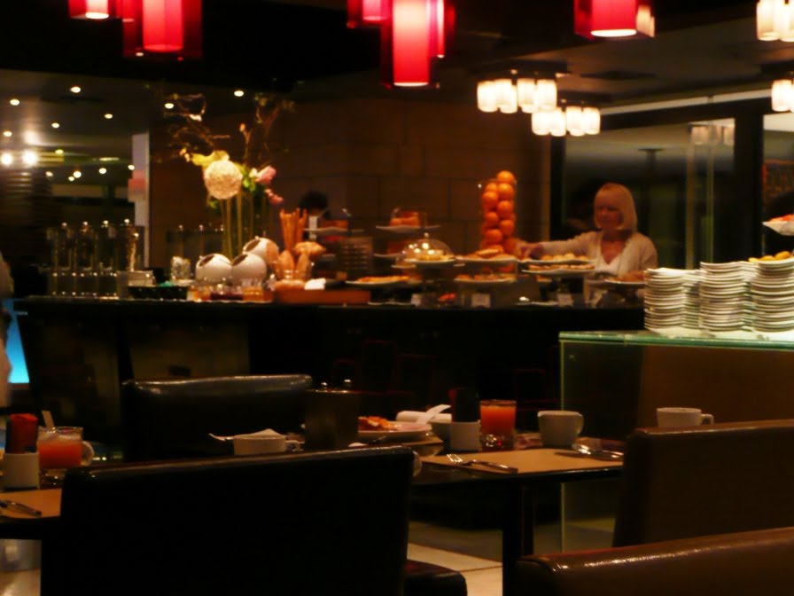 So the next morning, we wake up and go down to breakfast in the hotel...